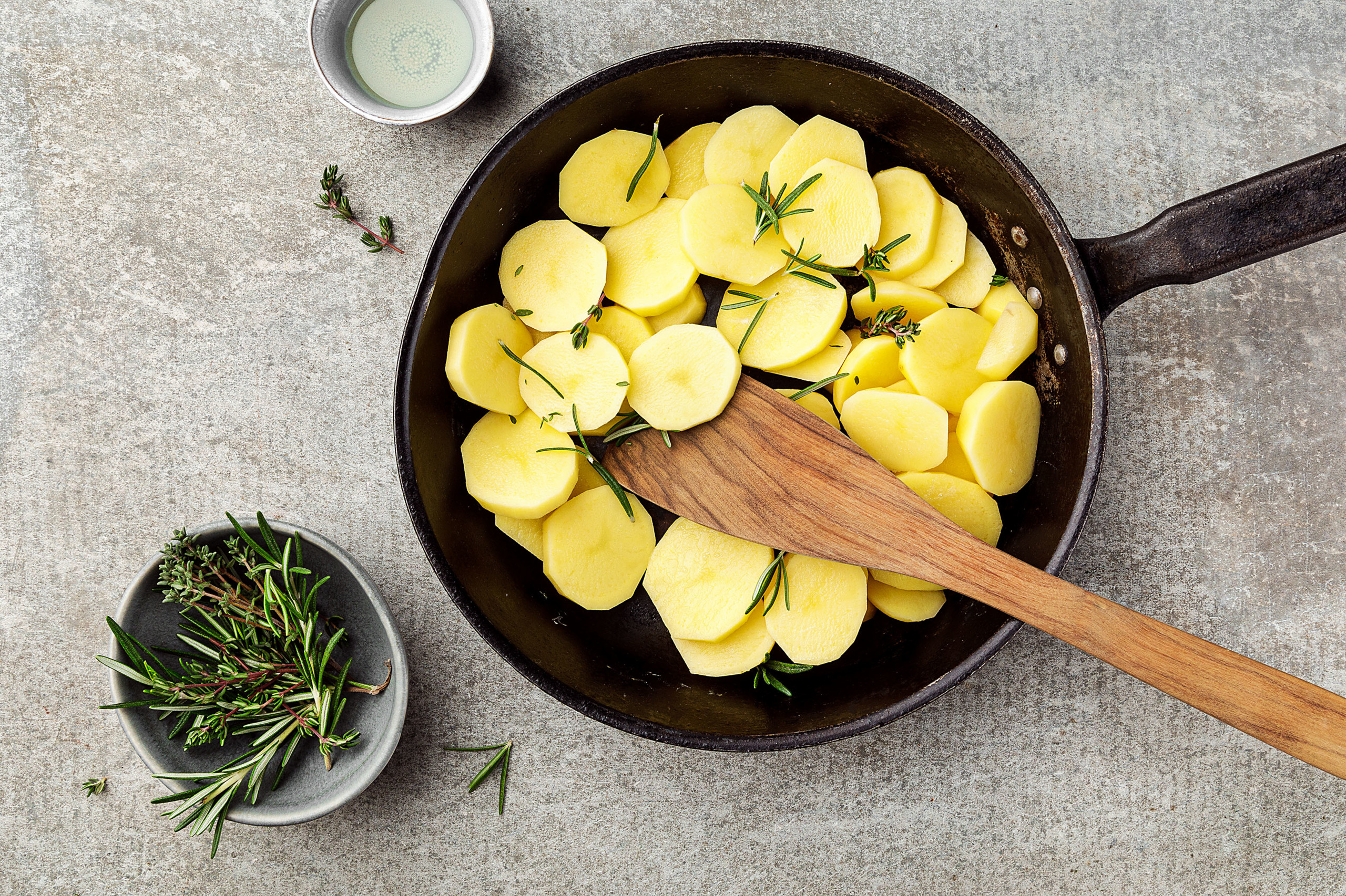 Ein herrliches Gericht mit Bratkartoffeln lässt sich ganz nach Geschmack aus rohen oder gekochten Knollen zubereiten. Mit rohen Kartoffeln entsteht eine bissfestere Konsistenz, die Zubereitung dauert aber etwas länger. Bratkartoffeln aus gekochten «Erdäpfeln» – zum Beispiel aus den «Gschwellti» vom Vortag – sind weicher, zerfallen aber auch schneller.